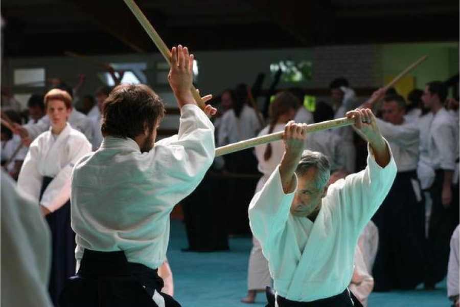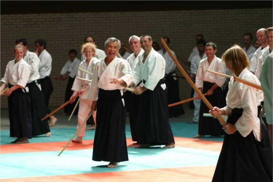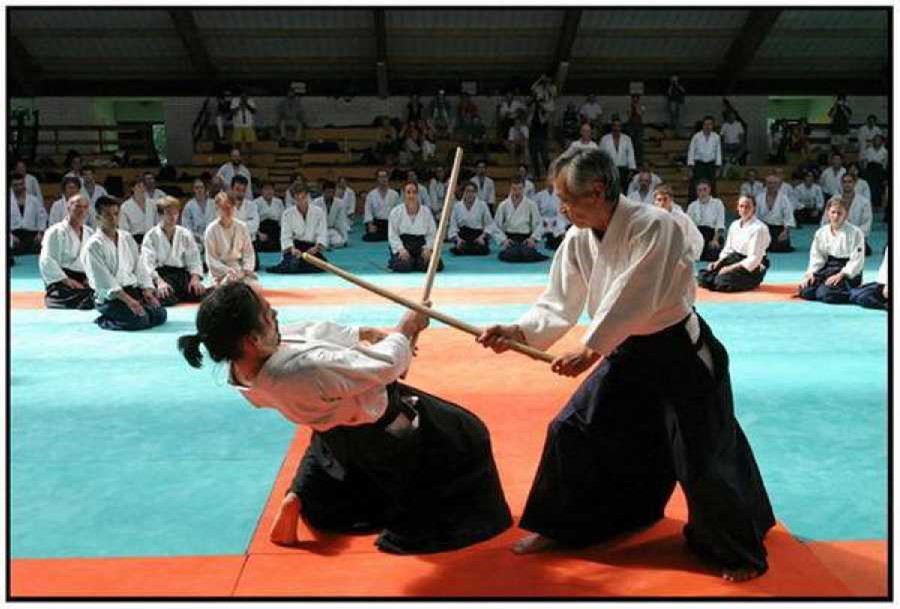 Fue O-sensei quien creo el Aikido. Y cada vez que demostraba Aikido utilizaba las armas. No nos corresponde a nosotros, sus discípulos y alumnos decidir o no si es necesario practicar armas. Esto es sin duda una extravagancia francesa, la de cuestionarlo todo. En Japón te tratarían inmediatamente de idiota si propusieras este tema (risas).