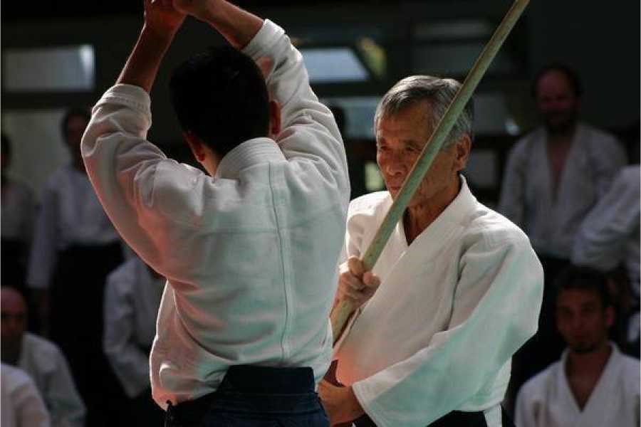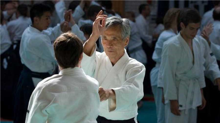 A la edad en los que muchos disfrutan de un retiro apacible él continúa incansablemente recorriendo el mundo para enseñar el arte que le transmitió Morihei Ueshiba.